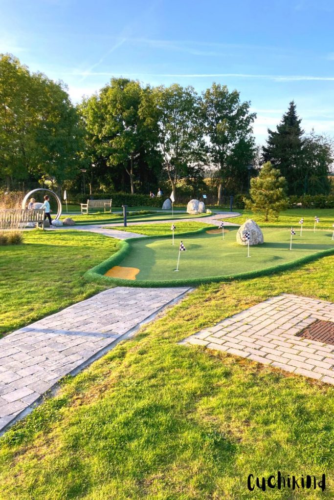 Es wird so viel für die Kinder geboten, dass man kaum alles schafft. Der Kleine hat einen Hindernisparcours bestritten und der Große hat sich am Minigolf versucht. Auf dem Gelände gibt es mehrere Spielplätze und Fußballgolf.