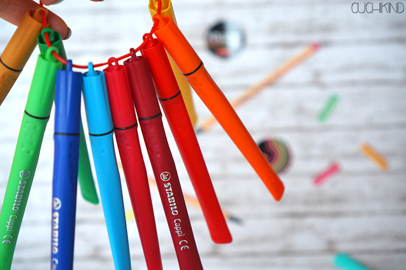 Den Stabilo Cappi kenne ich von meinen Schülern. Vor etwa 2 Jahren waren sie so im Trend, dass wirklich alle die Stifte am Band hatten. Die Idee finde ich lustig, für Finn sind die Stifte aber noch nichts, weil sie sich relativ schwer auf- und abfädeln lassen. Auch liegen sie bei kleineren Kindern nicht so gut in der Hand. Für Grundschüler sind sie aber bestimmt der Hit. Es gibt auch richtig viele Farben.