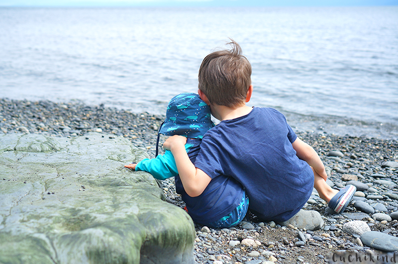 Der Ausblick auch vom Essbereich aus war unschlagbar. Wir konnten bis rüber zur USA schauen und direkt neben unserem Haus war ein kleiner privater Steinstrand, den wir nutzen durften. Finn hat Steinfiguren gebaut, eine Höhle und seltsame Algen entdeckt und Ben alle Steine mal auf den Geschmack getestet.